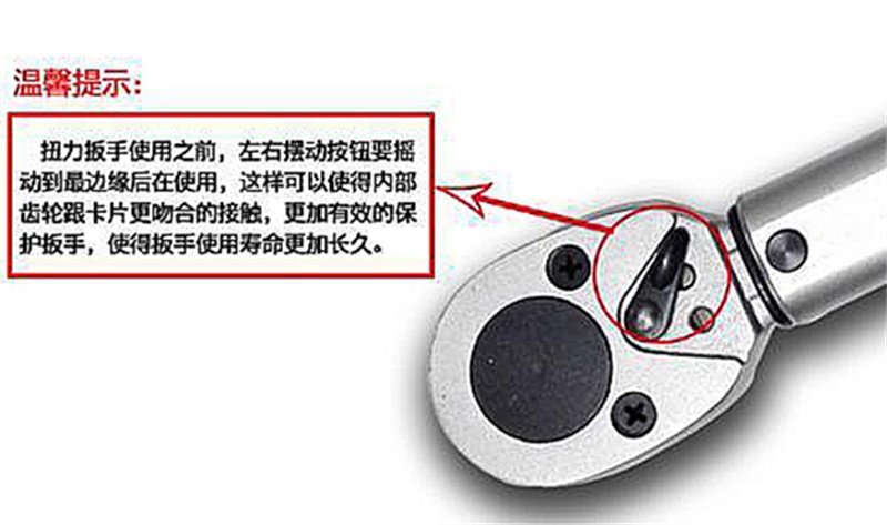 5.使用或長期未使用的,使用時需大扭力操作5-6次。使扳手組件得以潤滑,不使用時請將扭力設為小值